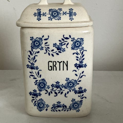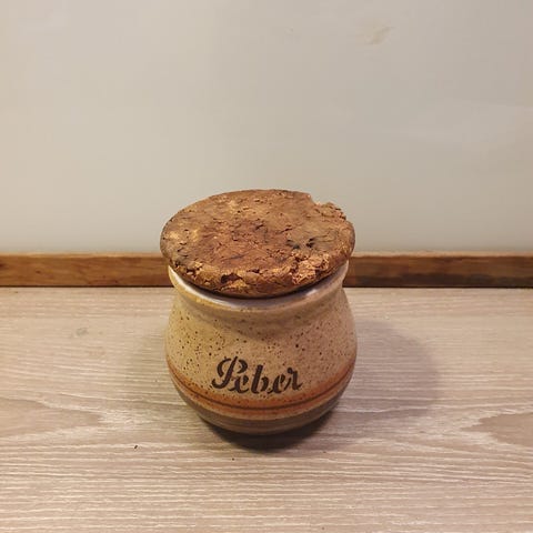 Muskat krydderikrukke.H 9 cm, B 8 cm.Flot og velholdt, uden skår eller revner. Gå til varen, for flere billeder.(A6).