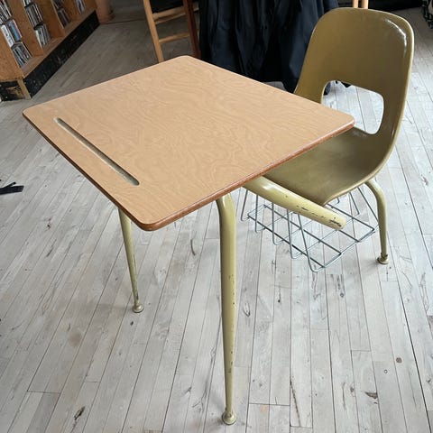 Vintage skolebord / skrivebord i bøgetræ og laminat