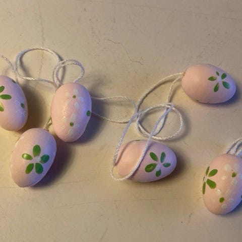 6 pastel lyserøde påskeæg i træ med ophæng