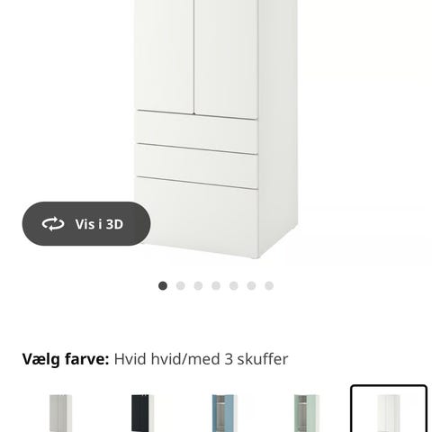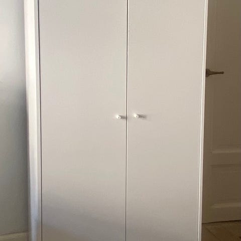 Sælger IKEA KLEPPSTAD garderobeskab med 3 døre i hvid, str. 117×176 cm. Skabet er pænt og velholdt, fra ikke‑rygerhjem uden husdyr. God opbevaringsplads til tøj og sko, perfekt til soveværelse eller entré.