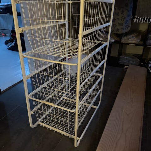 Fin IKEA Jonaxel trådkurv med 4 kurve. i grå farve. Brugt men uden brugsspor. Mål: 49 x 43 x 68 cm (B x D x H). Pris 150 kr.