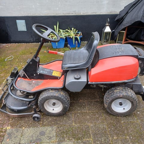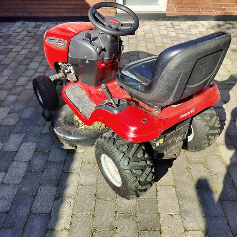 Jonsered LR 12 den kører fint. Batteriet dødt men starter med startkabler. Kunne godt trænge til en kærlig hånd