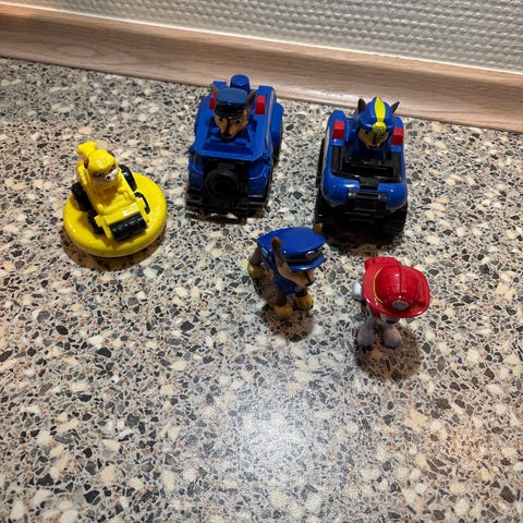 Sælger større samling af Paw Patrol maskiner og figurer. Det er brugt rigtig mange timer og fremstår med alm. brugsspor som ridser og mærker. Flere klistermærker er også slidt af. Lastbilen virkerdesværre ikke optimalt længere.