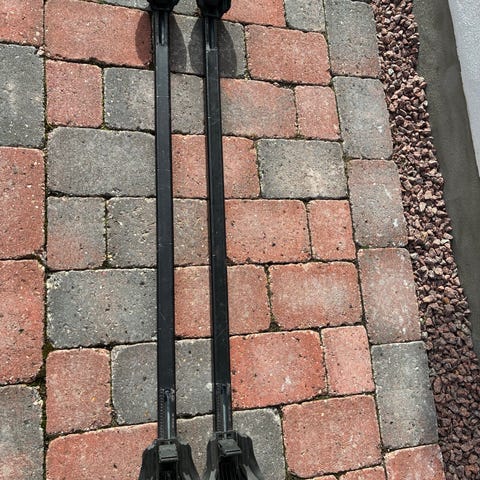 Tagbøjler til bil. Sættet består af to tværstænger med justerbare fødder/beslag til montering på bilens tag. Egnet til transport af fx tagboks, cykelholder eller andet tagbagage, afhængigt af kompatibilitet med bilmodel og ekstraudstyr. Materiale og præcise mål fremgår ikke af oplysningerne og bør kontrolleres ved køb.