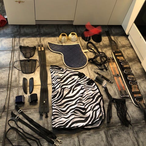 Spring pakke med læder pladegjord, fortøj, underlag, gamacher og hut