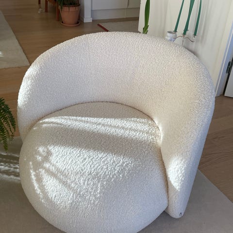 Pastill Bloom boucle lænestol i farven off White. Stolen har kun været brugt til pynt. Men har desværre ikke plads til den mere. Prisen er fast! Har lige sat den ned i pris. Nypris 6500,-