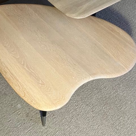 Egetræ designsofabord Naver AK 2530 design af Nissen & Gehl i egetræ hvid olieret og med sort bejdset ben med rustfri stålkapper, mål 140 x 65 x 46