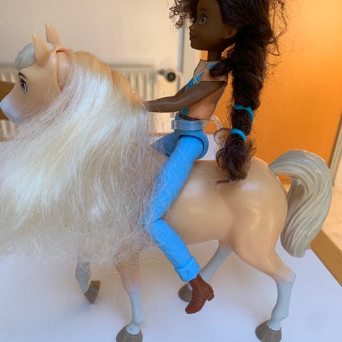 mini dukke med hest.