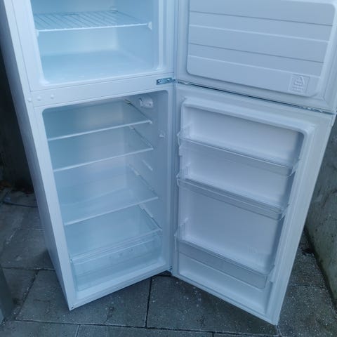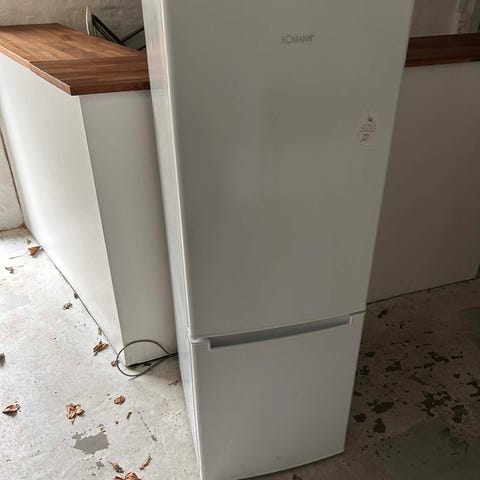 Beko køle-fryseskab. Skabet har køledel nederst med glashylder og dørhylder samt frysedel øverst. Fryseren er adskilt fra køledelen med egen dør. den har stået i et fortelt om sommeren derfor er der opsat låse slag på siden. Kan fjernes uden problemer. Har var opbevaret indendørs om vinteren Energi klasse A+ mål h145b54d54