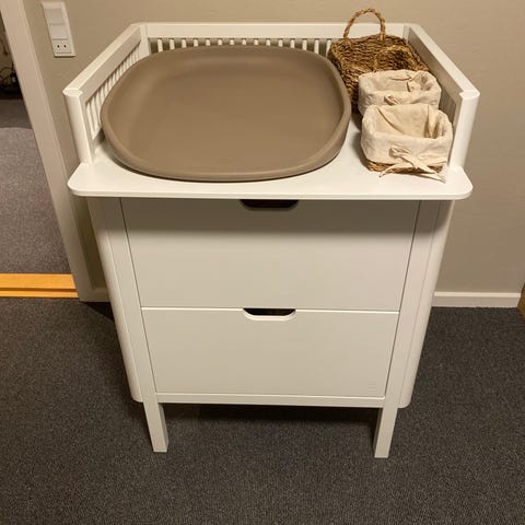 Puslebordet er brugt til ét barn og fremstår i pæn og velholdt stand. Der er almindelige brugsspor i form af: