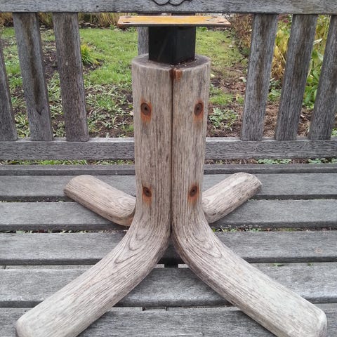 Kan bruges som sokkel til et lille fuglebad, et fad med blomsterhoveder eller lav krukke med planter. Soklen i sig selv er meget dekorativ. De to fotos viser soklen med to forskellige grader af patina.