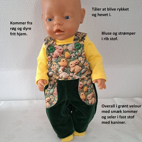 Baby Born kjole med ræv lavet i et sjovt prikket materiale.
