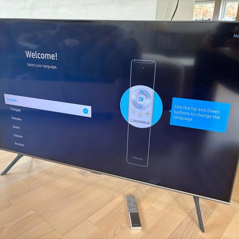 43 tommer Samsung TV model QE43Q60TAU fra 2020. Står som nyt, har været hængt på væggen fra ny. Fjernbetjeningen følger selvfølgelig med og det gør vægbeslaget og de originale fødder også.