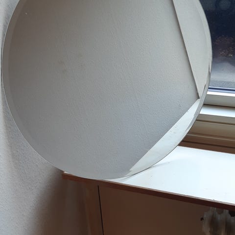 Rundt spejl i enkel, glat udførelse. Spejlet har cirkelformet design og neutral overflade, der egner sig til brug på badeværelse, entré eller andre rum i boligen. Velegnet til ophængning på væg. Størrelse og materiale fremgår ikke af oplysningerne.