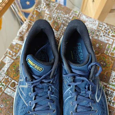 New Balance EVOZ Fresh Foam løbesko i størrelse 42. Skoene er lyseblå med hvid mellemsål. Overdelen er i åndbart mesh-tekstil. Velegnet til løb og anden træning, hvor der ønskes lette og fleksible løbesko.