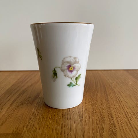 Lille fin vase med guldkant og motiv af gul krokus.