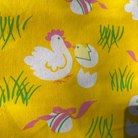 Sødeste dug med kyllinger og påskeliljer.
