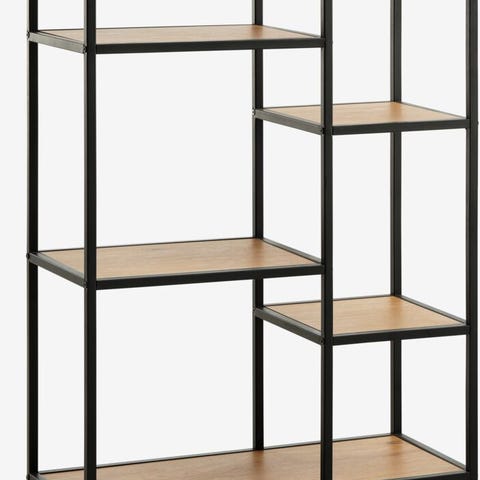 Sælger denne TRAPPEDAL reol, med 5 hylder, det er en varm eg/sort metal