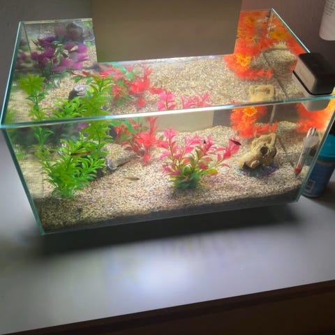 Planter og rødder medfølger ikke. Akvariet vil blive tømt inden salg.