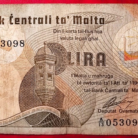 Vesteuropa Sedler MALTA 1 ONE POUND / LIRA 1979 Gardjola Tower & New University