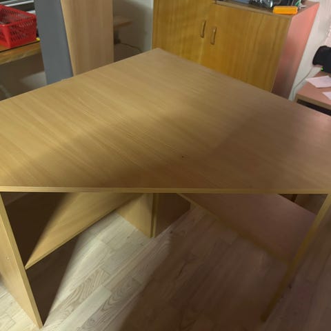Skrivebord lavet til hjørne. Perfekt til arbejdsplads. Maling beskadiget ved kanten, 195 cm på den lange del / 135 på den korte