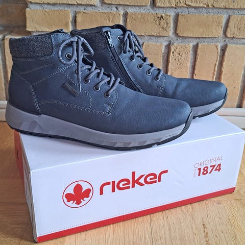 Støvler, Rieker Herre, model 05373-00, str. 44 sort, skind, varmt foer, helt nyt og ubrugt Lynlås i begge sider, så de er nemme at tage af/på, vandafvisende og varme. Sælges for 500 kr. koste 700 kr i butikken ring eller skriv til mit nr 23484182