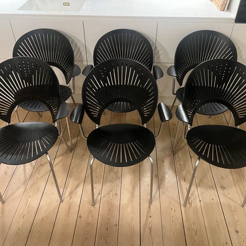 Sælger 6 stk. Nanna Ditzel stole, model trinidad. De fremstår fine, i sort farve med chrom ben. Sælges samlet.