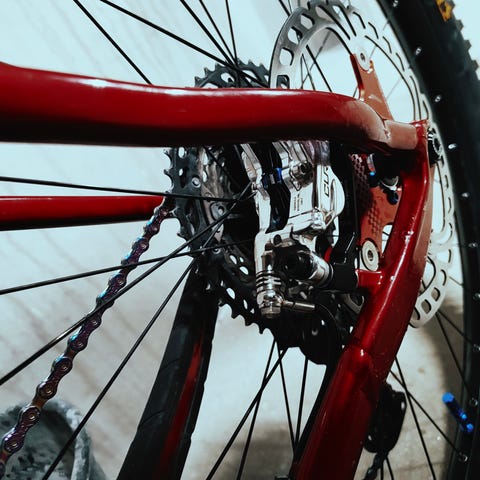 Med lang bremseslange.