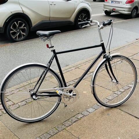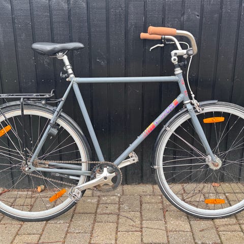 Cyklen står i god stand og har fået ny kæde, tandhjul, styr, håndtag, sadel, krankboks, kabler, og pedaler