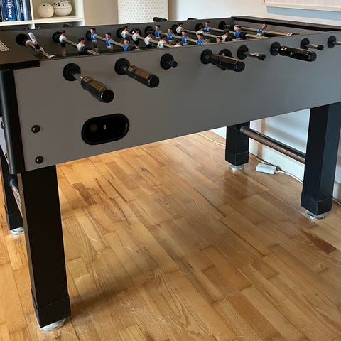 fodboldbord i høj udgave , H. 120 cm x B 55 cm x L. 70 cm . Spillebordet er ovalt.