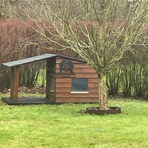 Grundet vi desværre ikke længere har vores dejlige store schæfer hanhund, sælges dette helt unikke og specialbyggede luksus hundehus.
