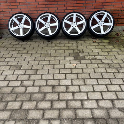 Vossen CVT alufælge 20" bred bagpå er 10x 255/30-20" og bred foran er 8.5x 235/30-20" krydsmål 5 x 112, sommerdæk 95% mønster. De er næsten som nye. ingen skrammer