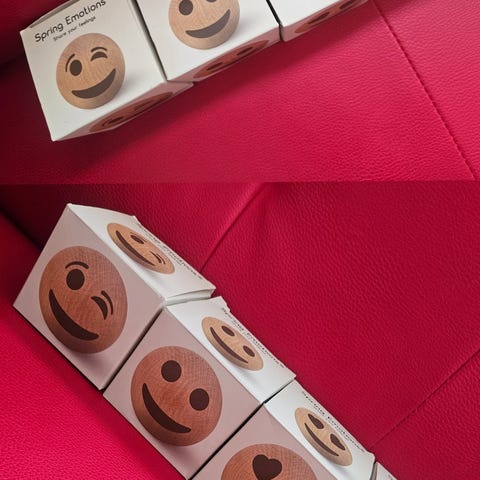 Objektet er en rund træfigur med et smilende ansigt og sorte hjerteøjne. Det har en glat overflade.,Afhentes i:,Røde Kors Aabenraa (546),Bemærk at mail, chat og beskeder ikke besvares, og varen skal købes på knappen "Gå til varen"