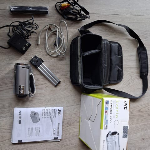 Videokamera CamCorder JVC, model Everio R. Støvafvisende og vandtæt. Lang batterilevetid. LCD touchscreen-skærm. Nyeste udgave. Med kabler, æske og instruktioner. Med 64 GB hukommelseskort som gave (mulighed for at indsætte et større hukommelseskort) NY, bogstaveligt talt aldrig brugt!