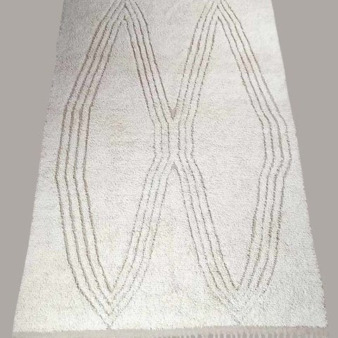 Hvert tæppe er nyt, unikt, lavet af 100% naturlige fåreuld – blødt, stærkt og fuldt bæredygtigt. Med sit nutidige mønster giver dette tæppe et friskt kig på det klassiske Berber-design. Mønstret og formene skaber harmoni og sikrer, at dette tæppe ubevidst straks fanger opmærksomheden hos enhver besøgende.