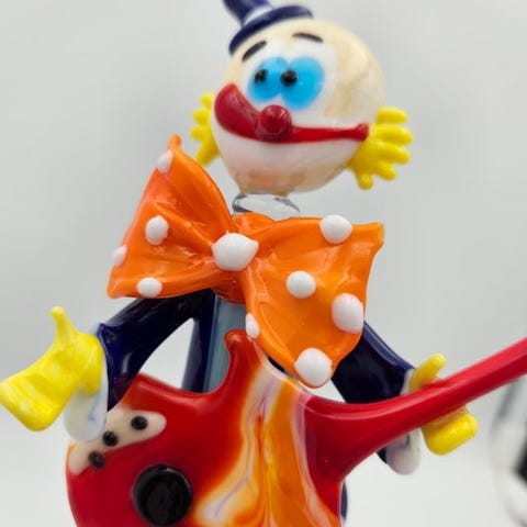 Original skulptur i Murano-glas lavet i hånden af mesteren Roberto Guidotti. Et unikt værk kendetegnet ved livlige farver, forhøjede dekorative detaljer og en fantasifuld komposition med en fugl. Håndværksmæssig varmeforarbejdning, typisk for muranske tradition.