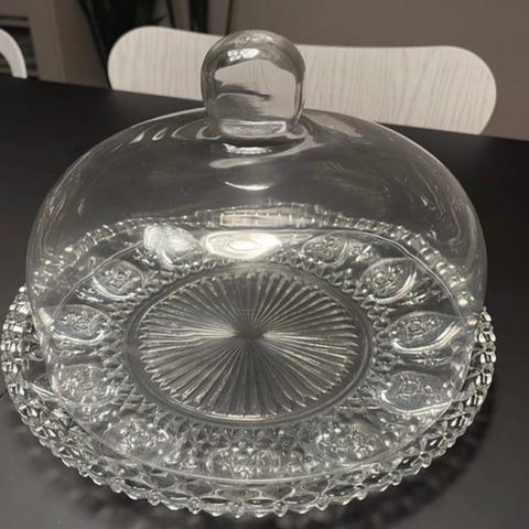 Centerpiece/opbevaringsbakke i kunstglas med dekorative slik