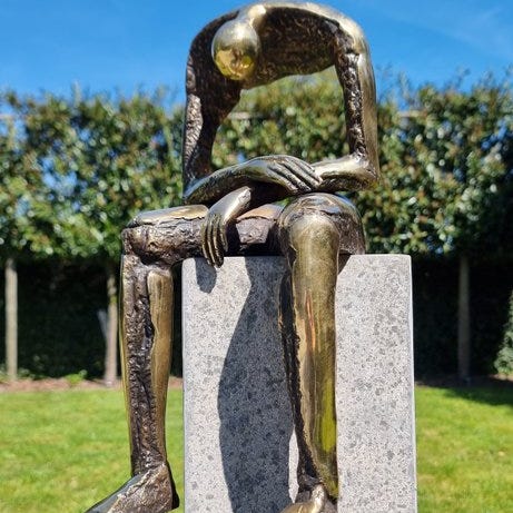 En elegant bronze-skulptur af en siddende ung kvinde, fanget i et roligt øjeblik med en lille fugl, der udstråler ynde og forfinethed. Den sarte holdning og de flydende linjer skaber en tidløs, poetisk tilstedeværelse, der beriger ethvert sofistikeret interiør. Et iøjnefaldende dekorativt kunstværk, der blander intimitet, skønhed og klassisk charme. Med signatur og bronzepræg. Nyproduceret
