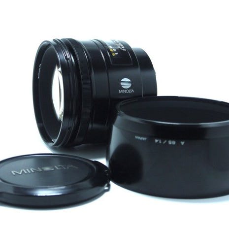 En lille “tidskapsel” fra den sidste klassiske Minolta-æra: to originale Minolta A-mount “D”-objektiver præsenteret i deres tidsmæssige æsker, præcis den slags sæt samlere elsker at have samlet.