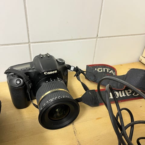Canon EOS D30 med Canon EF 18-55mm F/3.5-5.6 II USM og Canon EF 55-200mm F/4.5-5.6 II USM, i god fysisk stand og testet og i funktion; bemærk at en del af terminaldækslet mangler, gummidækslet til Video Out-terminalen er inde i porten, funktionen er bekræftet, begge linser er rene med næsten ingen støv, og sættet inkluderer to frontdæksler, to bagdæksler, et nyt batteri og lader samt et rem. Klik på den blå "gå til varen" knap, for at købe eller byde på denne vare. Den samlede pris vil blive vist inden du afgiver dit bud.
