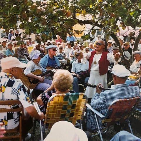 'Poolside Gossip' - Palm Springs 1970 af Slim Aarons , trykt senere.