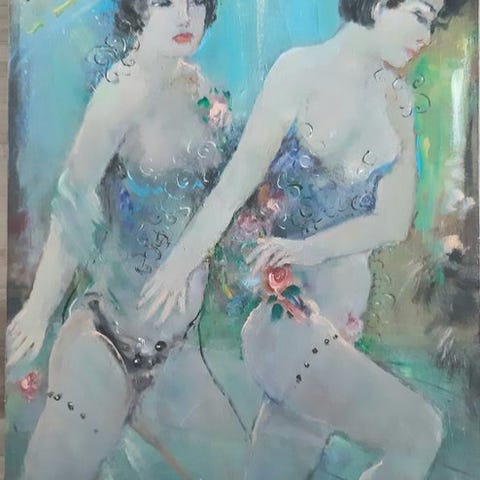 Et værk, der skildrer en delikat scene af moderskab, et tema der går igen i kunstnerens produktion, kendetegnet ved et let og poetisk streg og en dæmpet farvepalet.