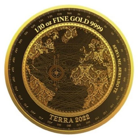 Niue Terra 2023 guldmønt, 1/10 oz, finess 9999, nominelt 10 NZD, 3.000 eksemplarer, ubrugt. Klik på den blå "gå til varen" knap, for at købe eller byde på denne vare. Den samlede pris vil blive vist inden du afgiver dit bud.