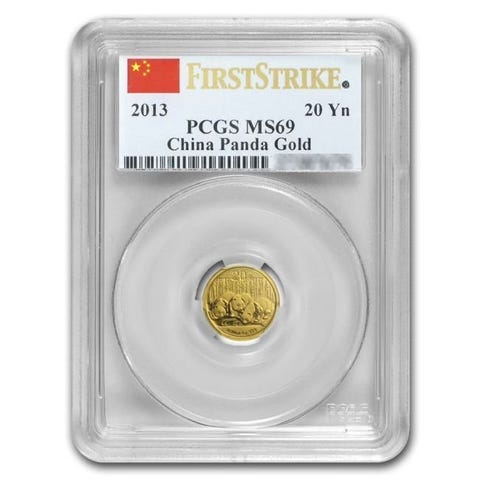 1988 kinesisk Gold Panda-mønt, 1/20 oz fint guld .999, pålydende 5 yuan, garanteret af People’s Bank of China, i ubrugt stand (BU). Klik på den blå "gå til varen" knap, for at købe eller byde på denne vare. Den samlede pris vil blive vist inden du afgiver dit bud.