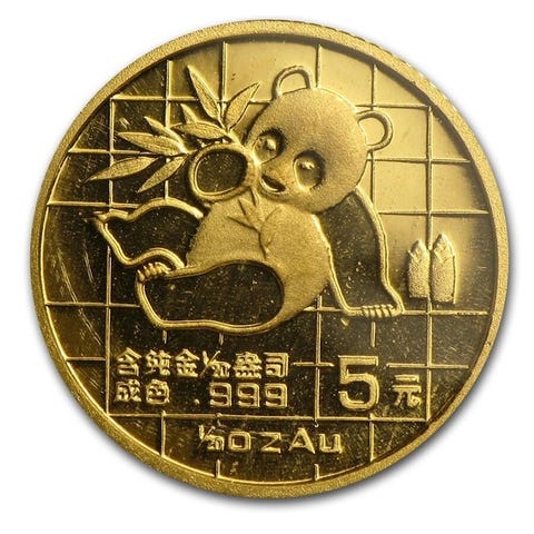 1988 1/20 oz ¥5 CNY Kinesisk Guld Panda-mynt