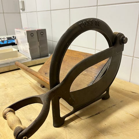 En original Alexanderwerk støbejern brødsnitter, fremstillet i Remscheid, Tyskland i begyndelsen af det 20. århundrede.