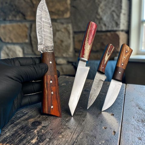 Tilbage på grund af stor efterspørgsel: Genåbner vores eksklusive Pattern-TWISTED stålknive – håndlavede i USA! Kære værdsatte kunder, Vi er begejstrede for at kunne genintroducere disse fantastiske pattern-FOLDED stålknive efter overvældende forespørgsler fra vores elskede fællesskab! Særligt designet til dem, der værdsætter antik æstetik, vintage charme og autentisk brugt/slidt karakter—disse bladene har smukke twistede og lagdelte mønstre, der vækker mindet om historisk håndværk. Fremstillet her i USA blander hver kniv traditionelle smedeteknikker med højtydende egenskaber (premium-stål som Shirogami-inspirerede højkulstofkerner for enestående skarphed og holdbarhed, normalt hærdet til 52–58 HRC). Perfekt til samlere, køkkenentusiaster der sætter pris på arve-værdigt håndværk, eller udendørs eventyrere der søger unikke, fortællende