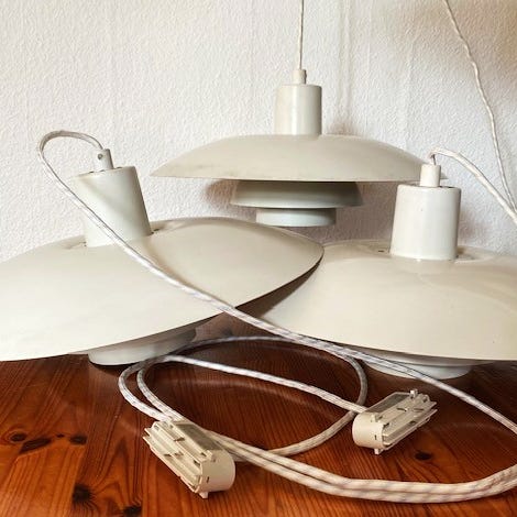 Tre PH 4/3 pendler af Poul Henningsen / Louis Poulsen – over 20 år gamle og fulde af attitude.