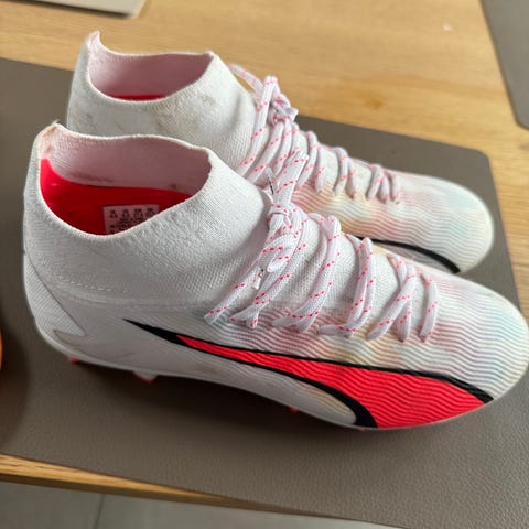 Modellen er med snørelukning og overdel i syntetisk materiale. Støvlerne har faste knopper til brug på græsbaner. Farven er hvid med røde og sorte detaljer. Velegnet til fodboldtræning og kamp.