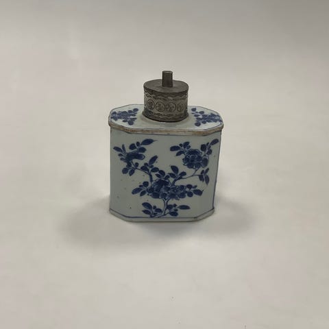 Orientalsk Kinesisk Vase / Ingefærkrus med motif i blå og hvid Jiaqing perioden 1795-1820? Måler 13,5 cm x 10,5 cm Meget små afslag i bunden